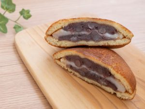 おいしい餅とあんこの入った日本の和菓子「どらやき」