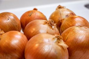 調理台に置かれたたくさんの玉ねぎ